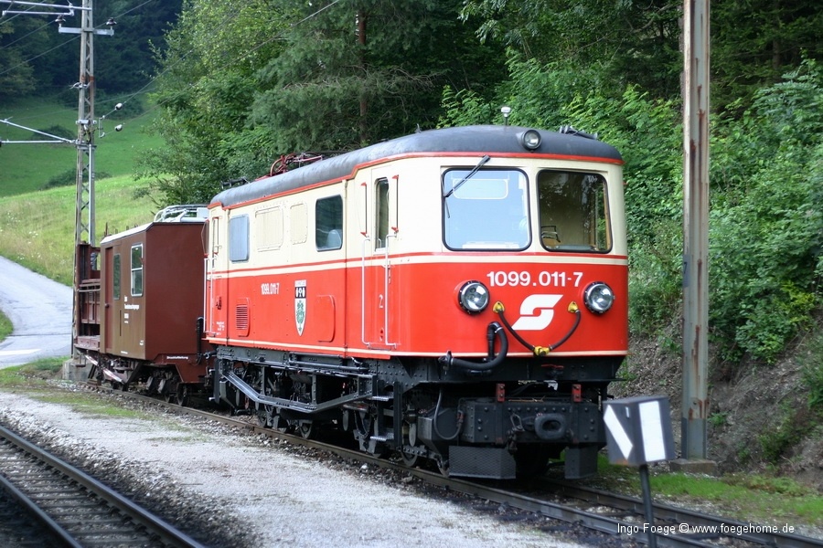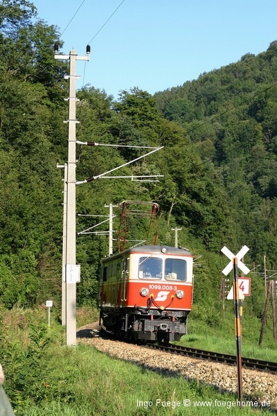 und Lok 1099.011-7 kurz vor erreichen des Bahnhofs Frankenfels
